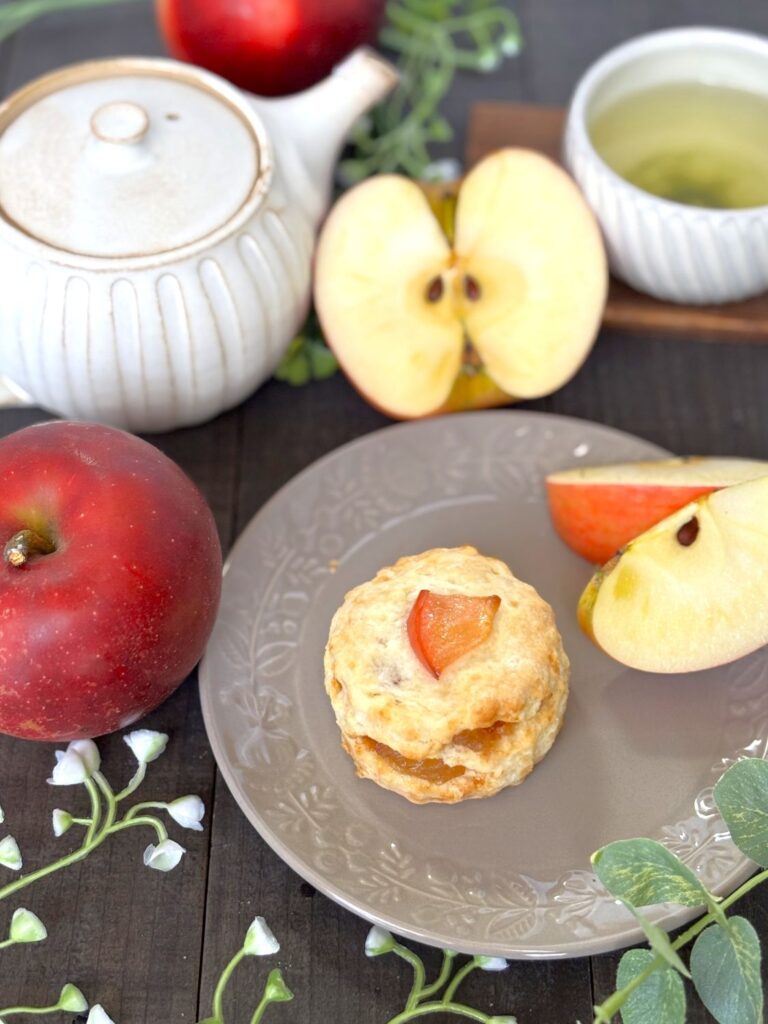 甘く煮たりんごにシナモンを加え、しっとり柔らかスコーンに混ぜ込みました。